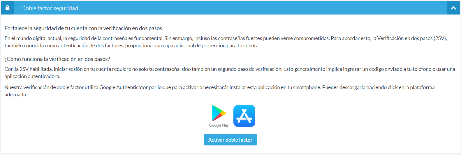 Activar el inicio de sesión con doble factor es muy sencillo: