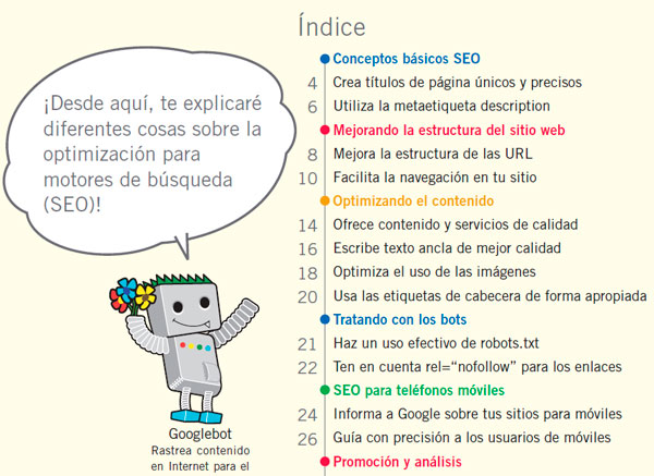 En Google han publicado un manual de optimización de buscadores que en principio era para el equipo interno de Google pero al final lo han querido ofrecer a toda la gente interesada, este manual no te asegura ni te indica el camino para salir en la primera página de los buscadores pero si que te da una série de pautas a seguir para poder facilitar el trabajo a los robots de los buscadores a indexar todo tu contenido.