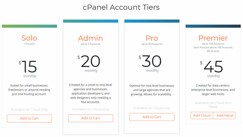 CPanel Admin (hasta 5 cuentas) tendrá un precio de $20