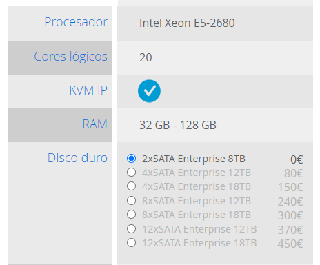 Por eso hoy os presentamos la remodelación de la gama Storage dentro de nuestra oferta de servidores dedicados. En ella hemos incluido 3 nuevos servidores que mejoran considerablemente los servidores de gran capacidad que ofrecíamos hasta entonces.