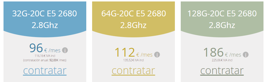 En primer lugar se ha mejorado los microprocesadores, pasando de los Intel Xeon E3 a los Intel Xeon E5 con los que multiplicamos por 4 los cores lógicos, pasando de 8 a 20.