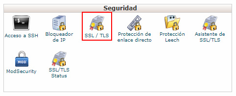 Una vez dentro del panel haz clic en el enlace "SSL / TLS" dentro de la sección "Seguridad".