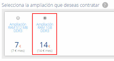 Selecciona el periodo, la cantidad de RAM, pulsa el botón "Continuar" y sigue los pasos de compra para finalizar la ampliación.