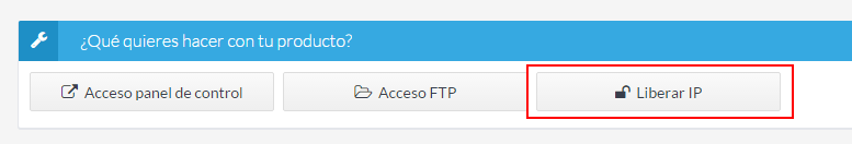 Al principio de la ficha del hosting verás los botones con las operaciones que puedes realizar sobre él. Para utilizar la nueva herramienta haz clic en el botón "Liberar IP".