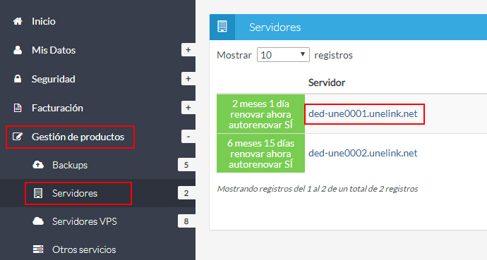En el listado de servidores, busca el que tiene configurado la IP para la que quieres añadir políticas de seguridad y haz clic en su referencia.