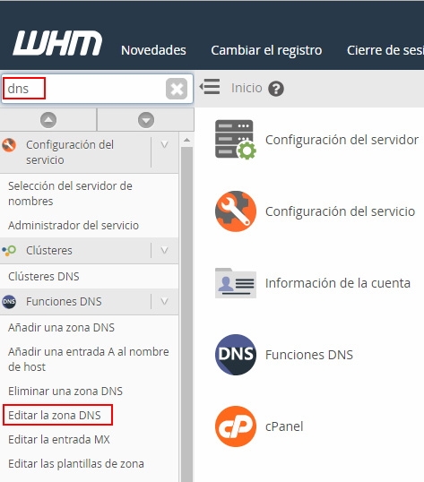 Lo primero que tienes que hacer es acceder al WHM donde tengas creado el dominio para el que quieres configurar los registros DNS.