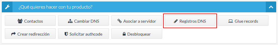 En la ficha del dominio pulsad el botón "Registros DNS".