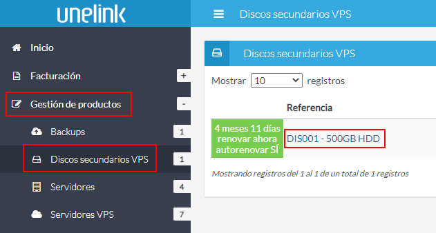 Si tienes contratado un Servidor Virtual HA (alta disponibilidad) y necesitas un disco secundario, puedes añadirlo fácilmente desde tu Extranet de Cliente.