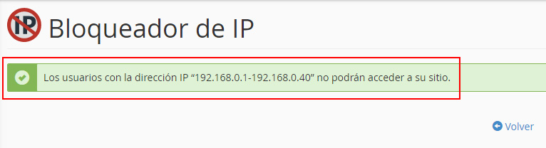 Tras pulsar el botón Añadir te aparecerá el mensaje confirmándote el bloqueo de las IPs.