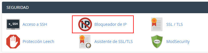 En la pantalla principal de cPanel haz clic en Bloqueador de IP dentro de la sección Seguridad.