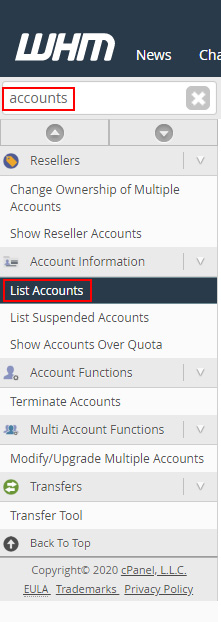 Para ello, accede al WHM:
