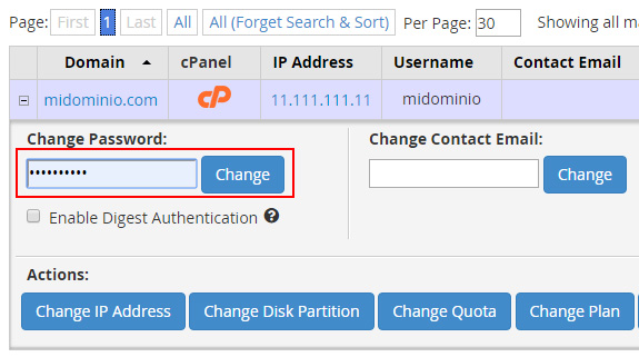 Si tienes un servidor VPS o dedicado con cPanel instalado, puedes utilizar el WHM para cambiar la contraseña de acceso al FTP por defecto que se crea al añadir una nueva cuenta.