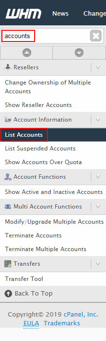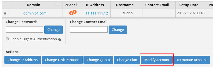 Para ello accede al WHM con el usuario root.