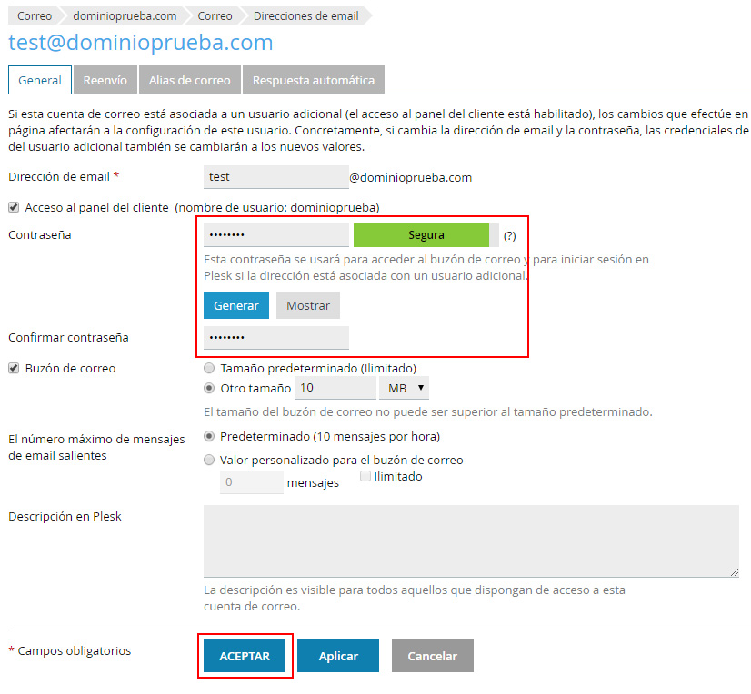Una de las acciones que puedes realizar es la de cambiar la contraseña de las cuentas de email. Si olvidas la contraseña de acceso a una cuenta de correo, tan solo tienes que acceder a Plesk y cambiarla.