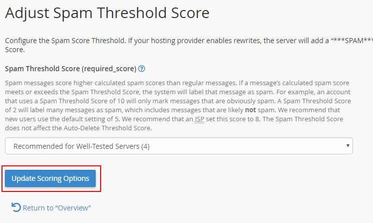 Si en tu servidor VPS, dedicado o hosting con cPanel instalado, tienes activada la herramienta SpamAssassin, puedes personalizar la puntuación necesaria para que un correo sea considerado spam.