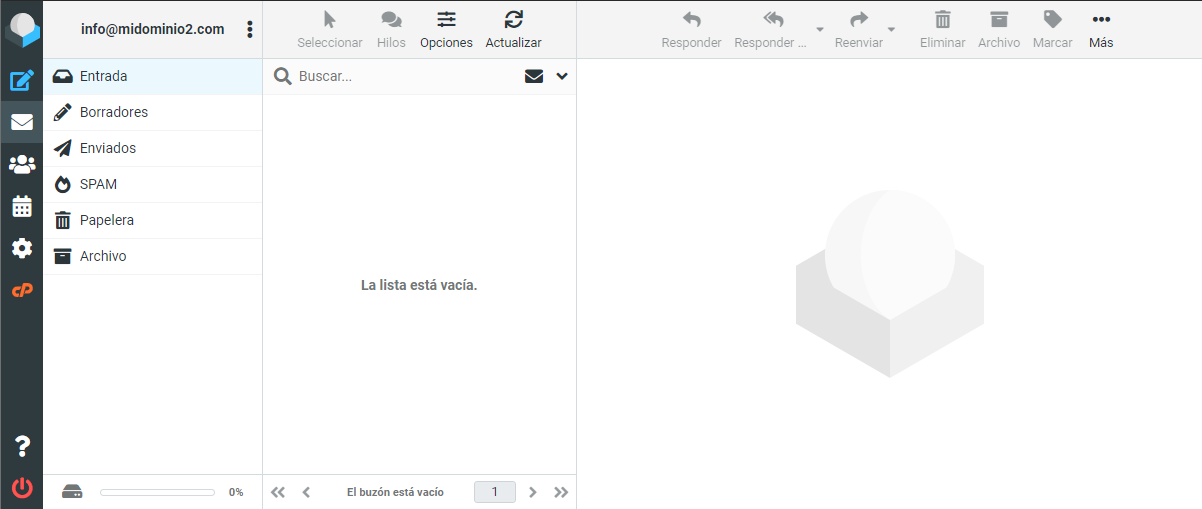 Tras esto, nos aparecerá la aplicación webmail seleccionada con los correos de la cuenta webmail que hemos accedido.