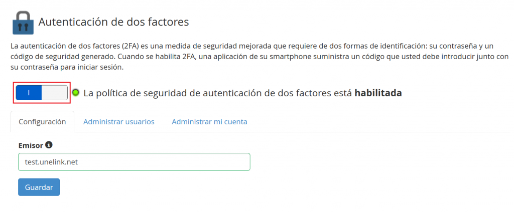 Ahora ya tenemos activado el sistema de autenticación de dos factores.