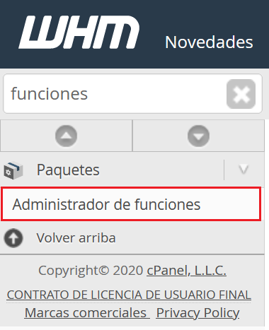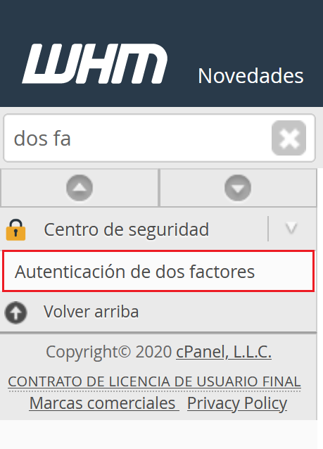 Primero debemos acceder al panel WHM para habilitar la extensión de autenticación en dos pasos.