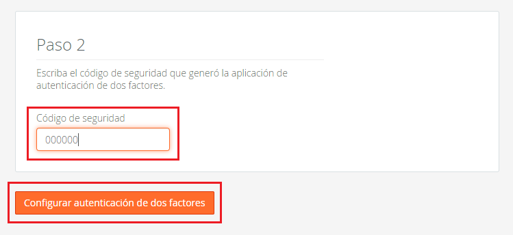 Una vez instalada, escaneamos el QR con la aplicación, posteriormente, introducimos el código de seguridad que nos genere la aplicación en cPanel y hacemos clic en el botón Configurar autenticación de dos factores.
