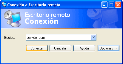 Inicio > Todos los Programas > Accesorios > Comunicaciones > Conexión a Escritorio Remoto