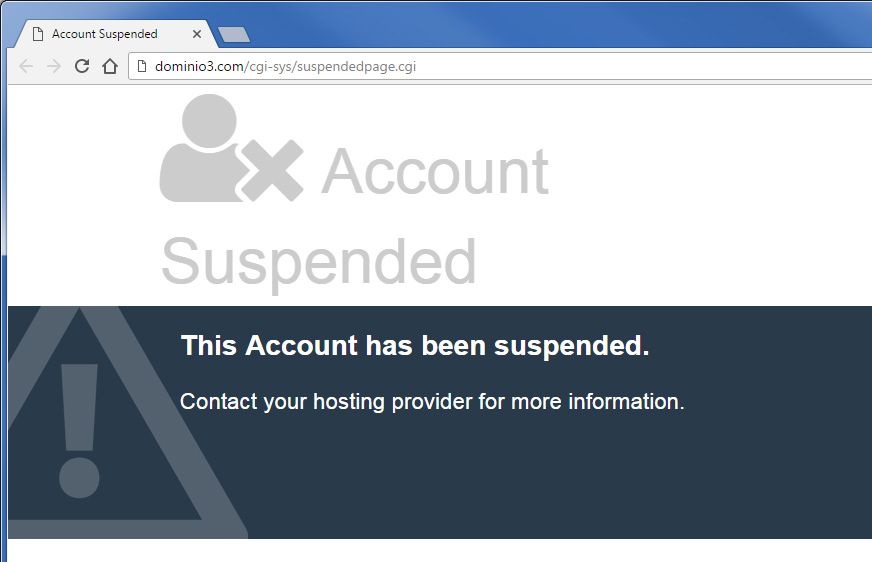 Una vez realizada la suspensión del dominio, si alguien intenta acceder, se le mostrará un mensaje indicando que la cuenta está suspendida.