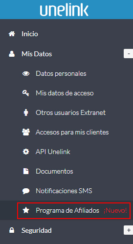 Y en el menú lateral haced clic en el enlace "Programa de Afiliados".