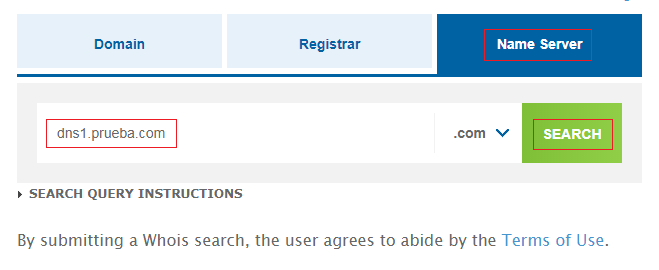 En ella escribe en el cuadro de búsqueda el DNS que quieres comprobar, haz clic en la opción Name Server y pulsa el botón Search.