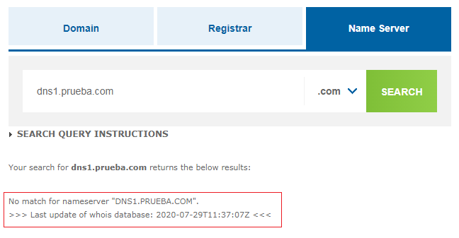 Si los Glue Records están creados correctamente y, por tanto, los DNS declarados correctamente, aparecerá el siguiente mensaje.