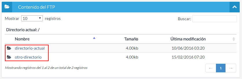 Si tenéis directorios creados, podéis hacer clic en ellos para ver su contenido y navegar a través de todo el árbol de directorios.
