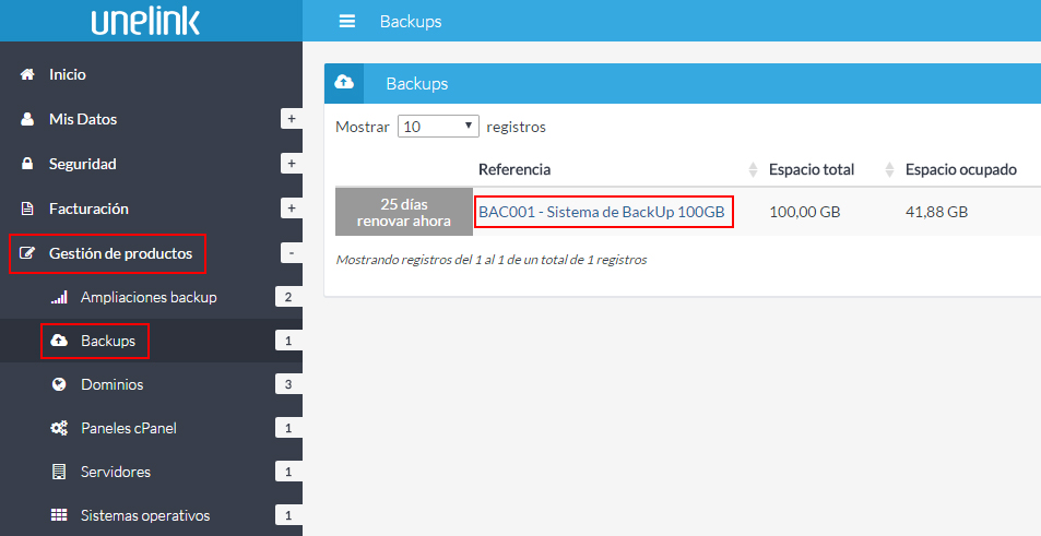 Tan solo tenéis que acceder a vuestra Extranet de Cliente y, en el listado de backups, hacer clic en la referencia del backup que queréis consultar.