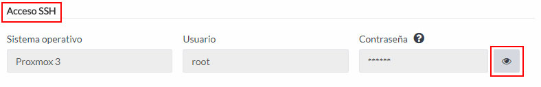 En la ficha del servidor, en el apartado "Acceso SSH", haz clic en el botón situado a la derecha del campo "Contraseña".
