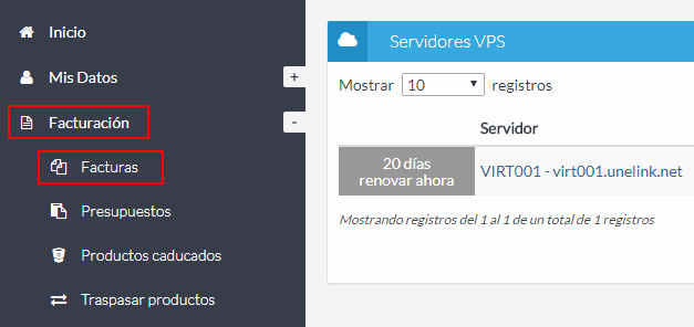 Vamos a ver cómo hacerlo usando como ejemplo la consulta de las facturas de un servidor VPS.