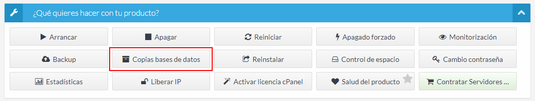 Pulsa en el botón "Copias de bases de datos" para consultar las copias que tienes configuradas.