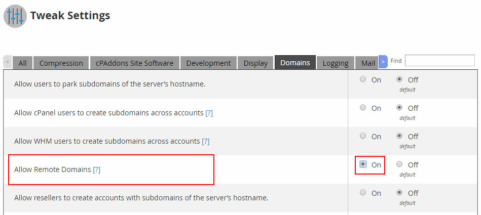 En la opción "Allow Remote Domains" haz clic en el selector "On" para activarlo.