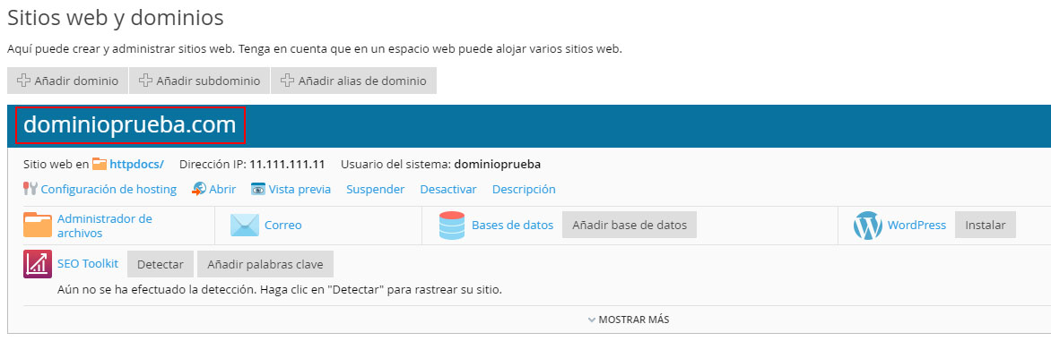 En el listado de dominios haz clic en el nombre del dominio en el que quieres crear el acceso FTP.