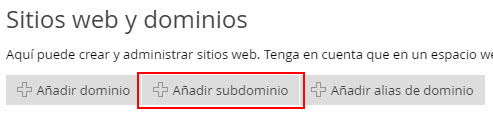 En la pantalla principal del panel, pulsa en el botón Añadir subdominio.