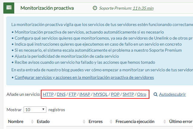 Para que nuestro sistema pueda monitorizar los servicios, necesita conectar con tu servidor, tanto para comprobar el estado de los mismos como para actuar en él en caso de que lo tengas configurado.