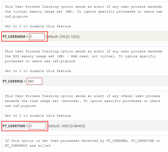 Busca las opciones PT_USERMEM y PT_USERTIME y asígnales el valor 0.