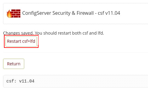 Por último, necesitas reiniciar el CSF para que los cambios tengan efecto.