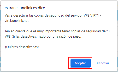 Si tienes un VPS con Backup Tranquilidad contratado, puedes desactivar temporalmente la realización de las copias de seguridad que realiza nuestro sistema.