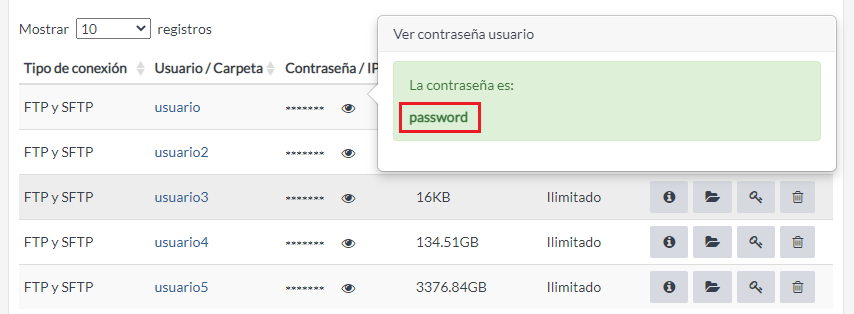 Busca el usuario y pulsa el botón para consultar la contraseña.
