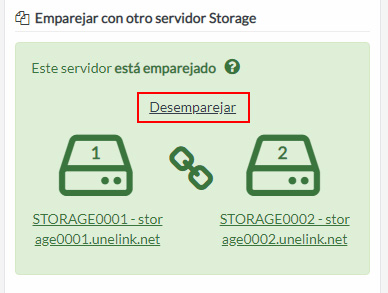 Para desemparejar los servidores y que vuelvan a ser independientes, tan solo tienes que hacer clic en el enlace Desemparejar.