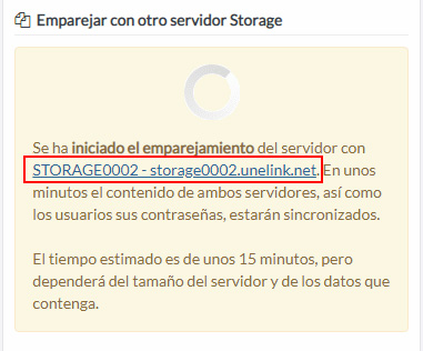 Dentro de la ficha del servidor, en la parte derecha, tienes la nueva opción Emparejar con otro servidor Storage. Selecciona el servidor de destino donde se va a duplicar todo el contenido.