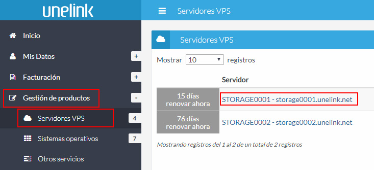 En el listado de servidores VPS, busca el que quieres duplicar y haz clic en su referencia.