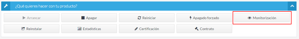 Dentro de la ficha del servidor, dirígete a la parte superior de la ventana y pulsa el botón "Monitorización".