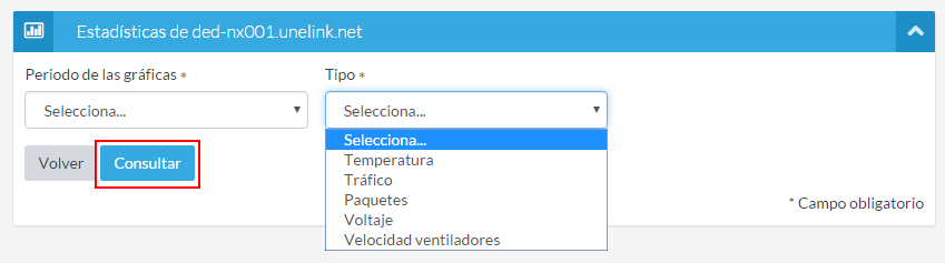 Dentro de la sección "Estadísticas", tan sólo tenéis que seleccionar el periodo que queréis consultar, así como el tipo de gráfica (por tráfico o por paquete) y pulsar el botón "Consultar".