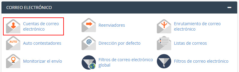 En el panel principal de cPanel haz clic en Cuentas de correo electrónico dentro del apartado Correo electrónico.