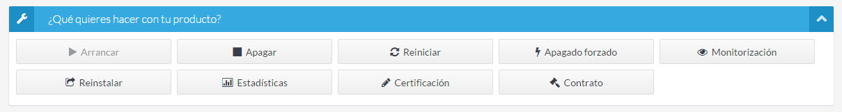 Reiniciar: Esta acción lo que hace es un reinicio ordenado, parando previamente los servicios que estén en ejecución en el servidor, en la medida de lo posible.