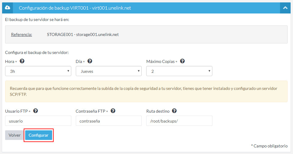 Una vez introducidos todos los datos, pulsad el botón "Configurar" y ya tendréis programada la copia de seguridad.