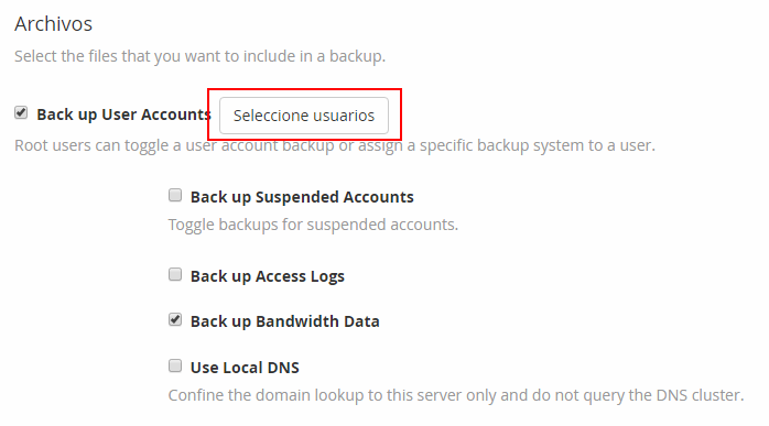 En la sección de Archivos pulsa en el botón Seleccione usuarios para elegir las cuentas que quieres copiar.